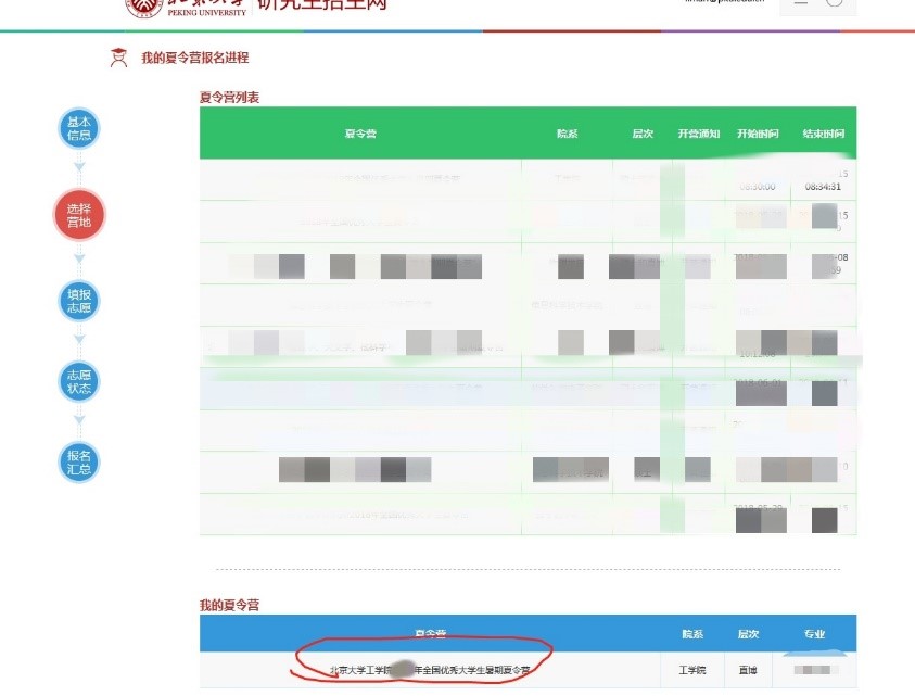 点击下面那个我的夏令营,就可以更改志愿信息的界面了,再点击下一步
