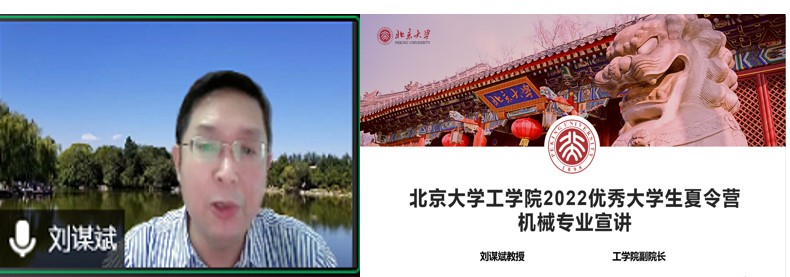 7月6日上午,机械专业举行线上开营暨学科点宣讲仪式,工学院副院长宋洁教授致欢迎辞,并介绍工学院的相关情况,随后副院长刘谋斌教授对学科点完备的培养体系、独特的课程设置、创新的实践平台等进行了详细介绍,并与同学们进行了线上互动。两位老师表达了对各位营员的希冀与鼓励,同学们表达了对北大的憧憬和向往,开营仪式在热烈掌声中圆满落幕。专业教育与国际化办公室主任张珊珊和全体工作人员,以及来自北大、清华、北航、北理、同济、上交、天大、山大等80余名营员参加了宣讲。