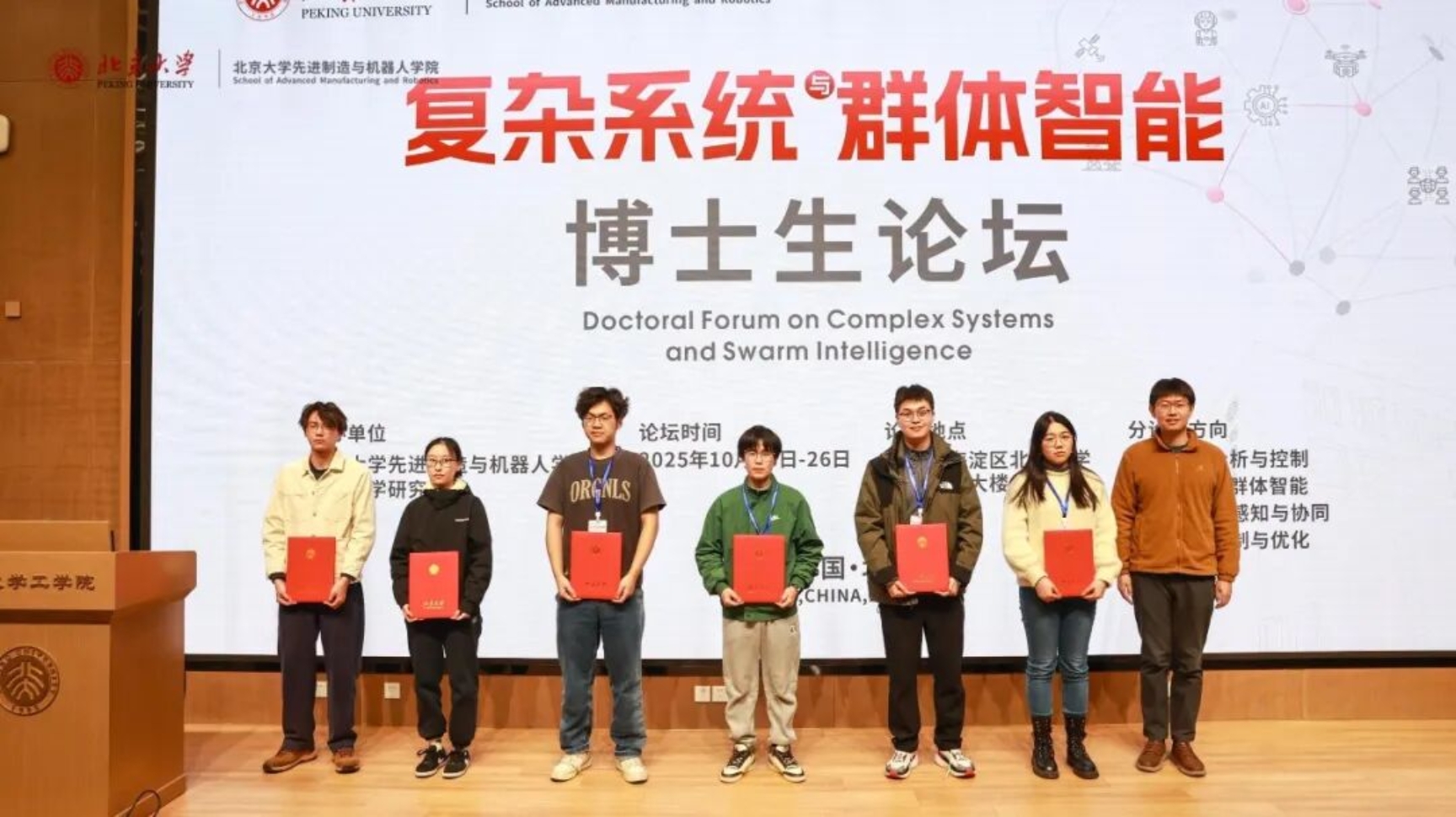 2025年10月25日至26日,北京大学“复杂系统与群体智能”博士生论坛成功举行。本次论坛由北京大学先进制造与机器人学院及北京大学研究生院共同主办,并获得北京大学“研究生教育创新计划”的立项支持。论坛内容涵盖开幕式、著名学者的主题演讲、博士生口头报告、学术海报展览以及闭幕式和颁奖典礼。与会的嘉宾和来自国内外23所高校及科研院所的博士生们就复杂系统、群体智能等领域的最新研究成果进行了深入的交流与探讨,在观点的交锋与思想的碰撞中收获知识和见闻。
