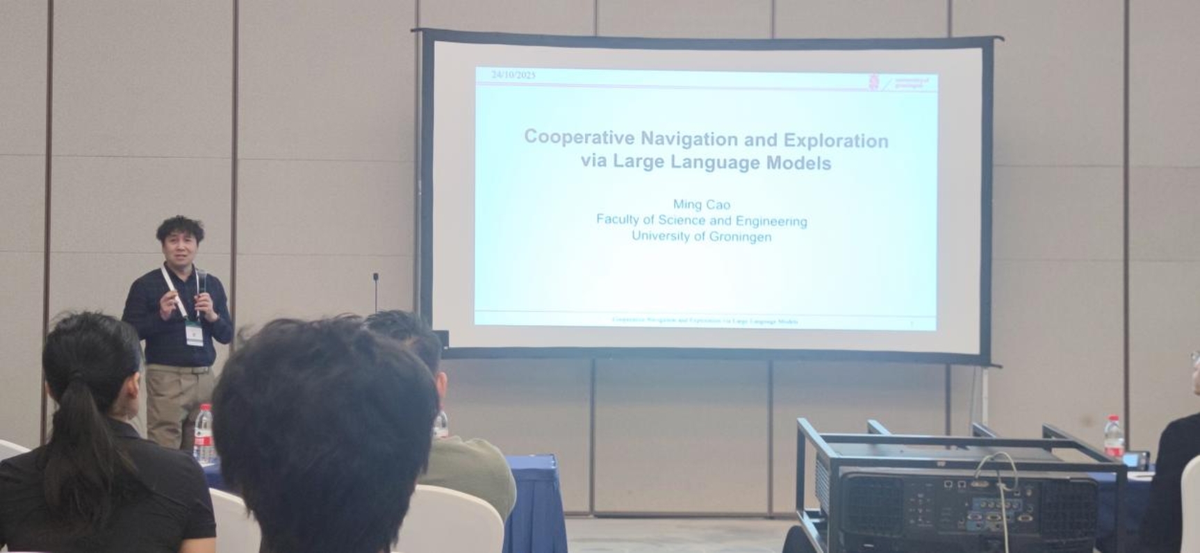 会议邀请了来自西湖大学、格罗宁根大学、中国科学院、纽伦堡工业大学、华东理工大学、北京大学等机构的多位专家学者,共6场报告涵盖LLM与多机器人任务规划、LLM驱动的协同导航与探索、LLM与多智能体学习、Collective Object Transport Using Foundation Models、LLM与多机器人编队控制与路径规划、LLM-Enabled STL-Centered Robot Motion Planner等最新研究进展。研讨会还设置了专家圆桌讨论与观众互动问答环节,促进跨领域思想碰撞与未来合作。