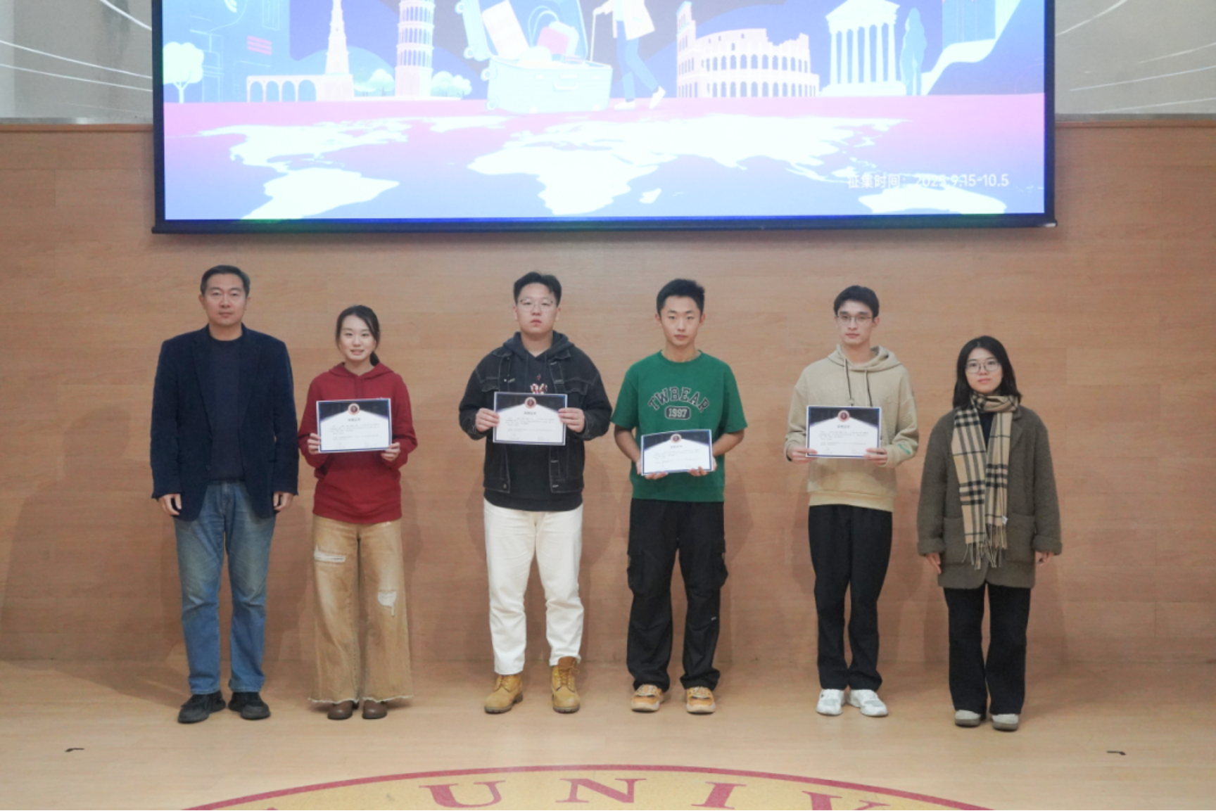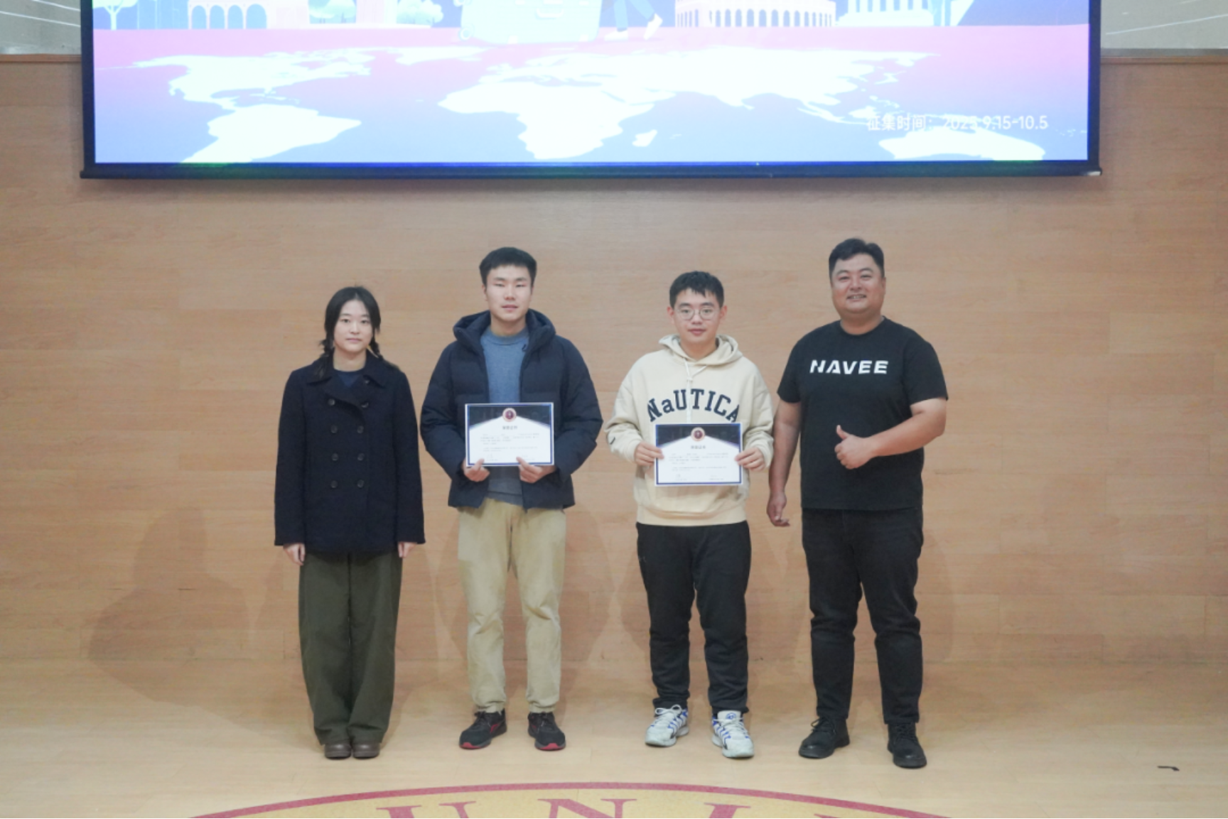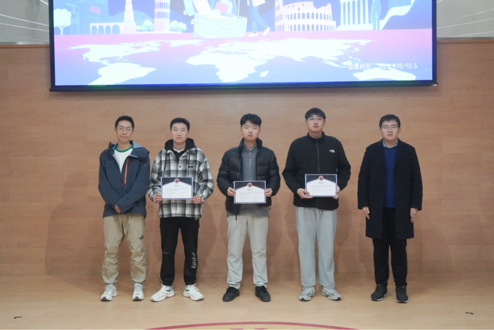 颁奖环节中,到场领导和嘉宾上台向获奖同学颁发证书,并合影留念。